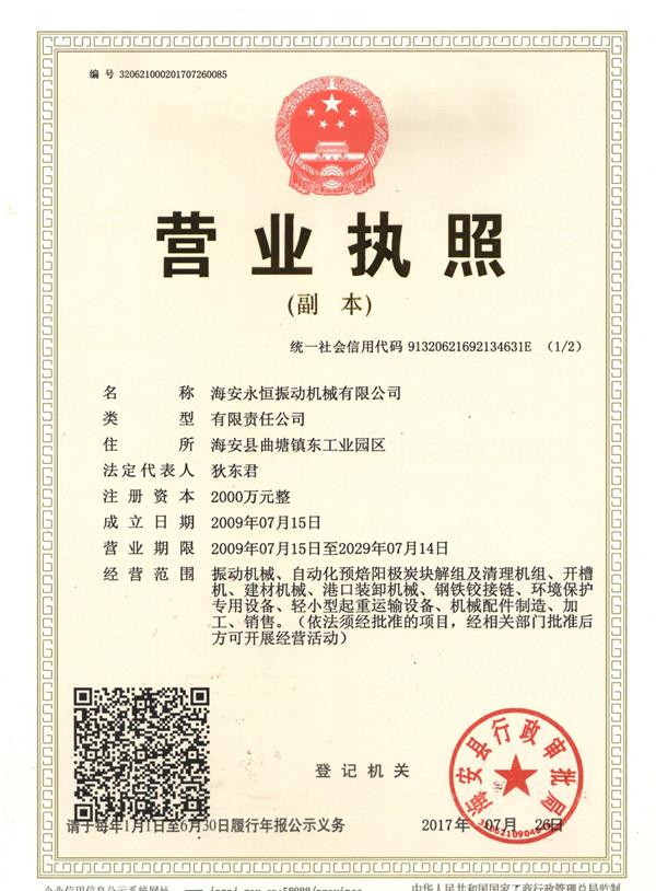 當(dāng)前所在的位置:海安永恒振動(dòng)機(jī)械有限公司 >> 資質(zhì)證書(shū) >> 營(yíng)業(yè)執(zhí)照